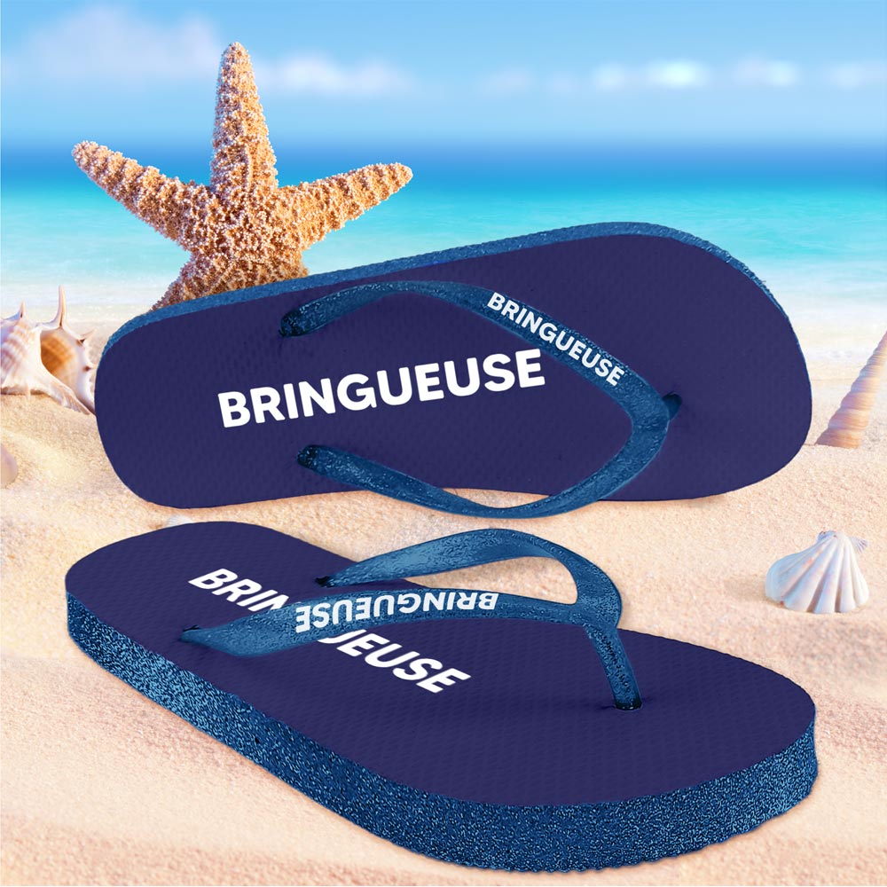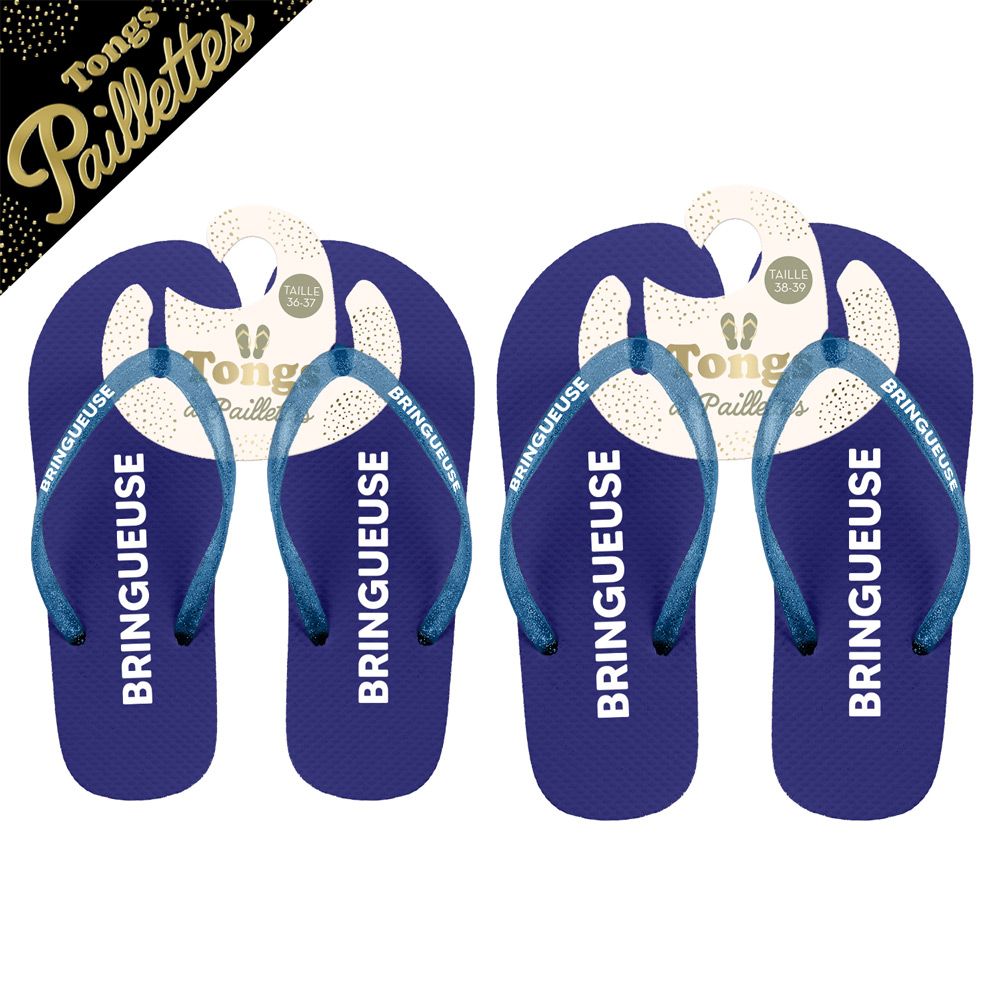 Le mot Bringueuse évoque fête, humour et bonne humeur. Avec ces tongs à paillettes, vous affirmez votre côté festif avec style et légèreté.